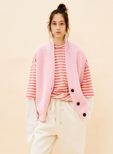 Knitted vest with "V" neckline.It features a front button fastening.Wide armhole detail.Soft fit, available in ONE size.