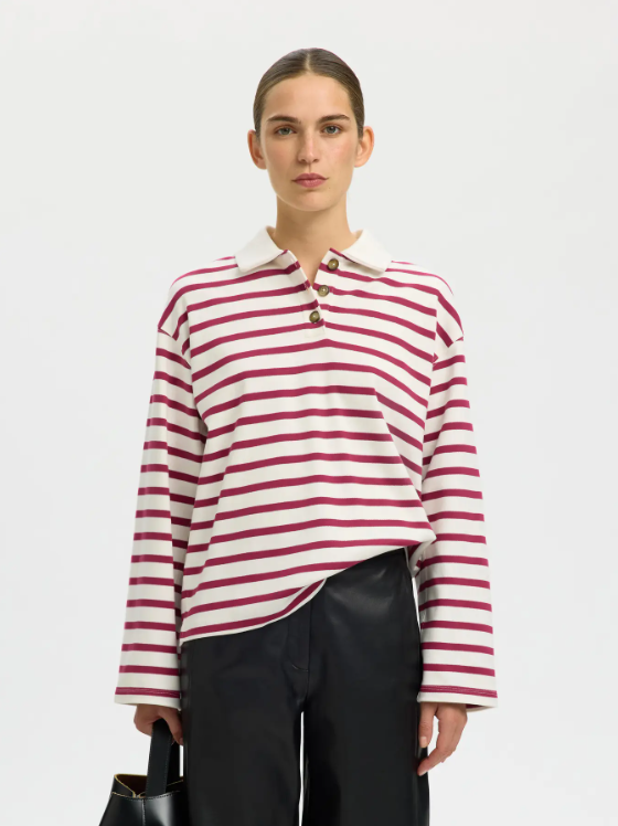 SLFWADA LS STRIPE COLLAR TOP - SELECTED